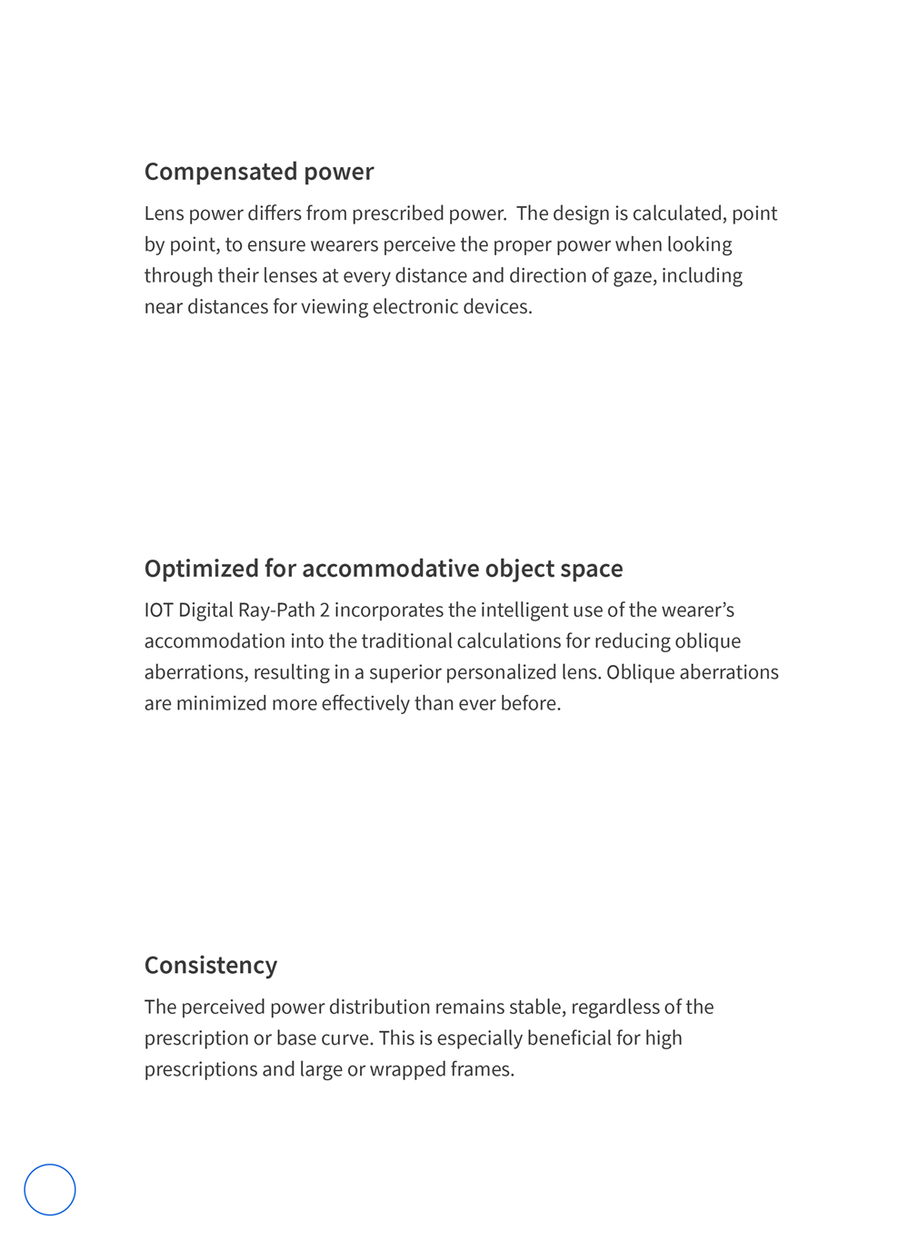 provide high visual comfort, Improvement in false myopia, Avoid ghost reflections,